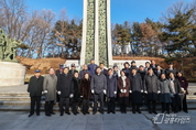 [광흥타임즈 = 구민지 기자] 의왕시가 신년을 맞이해 1일, 현충탑에서 국가를 위해 헌신한 분들의 숭고한 희생정신을 기리는 참배를 진행했다. 이날 참배에서는 안치권 부시장, 김학기 의왕시의회 의장, 이소영 국회의원, 시의원, 도의원, 보훈·안보 단체 회원 등 90여 명이 참석해 나라를 위해 헌신한 참전유공자 및 독립 유공자를 추모하는 헌화와 분향을 진행했다. 참석자들은 이날 진심을 담은 참배를 통해 선열들의 뜻을 되새기며, 시 발전과 시민 화합을 위해 힘을 모을 것을 다짐했다.