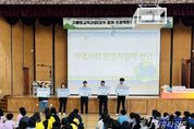 [광흥타임즈 = 조수제 기자] (재)광명시청소년재단(이사장 박승원) 디딤청소년활동센터(센터장 안미선)는 충현초등학교(교장 김형식), 광명시 1.5℃기후의병 지원센터(탄소중립정책팀장 김현태), 광명시환경교육센터(센터장 김동현), 광명업사이클아트센터(센터장 강진숙), 광명YMCA(사무총장 윤재향)와 연계하여 10월 15일 ‘환경지킴이 선언식’을 진행했다. ‘자율형 교육과정[모두 함께 프로젝트]’는 학교와 지역 내 5개 기관이 협력하여 환경 커리큘럼을 개발하고, 충현초등학교 4학년과 연계하여 환경 전문교육과 지역사회 공헌활동을 제공하기 위해 마련됐다. 첫 활동인 ‘환경지킴이 선언식’은 충현초등학교 4학년 청소년 89명을 대상으로 ▲연계기관 소개 ▲청소년 환경지킴이 선언 ▲지역사회 환경지킴이 선언 등의 순서로 진행됐다. 충현초등학교 4학년 대표 청소년들은 ‣ “길에 쓰레기 버리지 않기” ‣ “급식 먹을만큼만 받기” ‣ “물 절약하고 양치컵 사용하기” ‣ “학교에 있는 쓰레기 줍기” 로 실천다짐을 발표했고, 충현초등학교 4학년 모두 환경을 지키기 위해 실천할 것을 선언했다. 또한, 지역 내 5개 기관