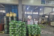 [광흥타임즈 = 조수제 기자] 안산시 농수산물도매시장은 지난 2일 도매시장 내 중도매인인 반월농산(대표 노영현)으로부터 추석 명절을 맞이해 배추 1,800kg을 기탁받았다고 3일 밝혔다. 안산시농수산물도매시장은 2015년부터 푸드뱅크 사업을 통해 도매시장법인, 중도매인으로부터 잉여 농산물(채소, 과일 등)을 후원받아 지역사회 취약계층에 도움을 주고 있다. 노영현 대표는 “명절을 맞이해 경기 불황과 높은 물가로 어려움을 겪고 있는 이웃들에게 조금이나마 도움이 됐으면 한다”며 “지속적으로 소외계층을 돕는 일에 꾸준히 동참하겠다”고 말했다. 이범열 농업기술센터 소장은 “우리 지역의 어려운 이웃들과 상생하는 마음으로 후원을 해주신 중도매인에게 감사드린다”며 “앞으로도 취약계층과 동행하고 나눔 문화를 실천할 수 있도록 노력하겠다”고 말했다.