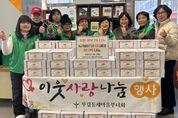 [광흥타임즈 = 조수제 기자] 안양시 동안구 부림동 새마을부녀회는 지난 28일 오전 10시, 설 명절을 앞두고 관내 독거노인 세대를 대상으로 ‘희망·행복 1% 나눔행사’를 가졌다고 29일 밝혔다. 이날 행사는 부림동 행정복지센터에서 정윤주 부림동장과 오세희 부녀회장을 비롯한 새마을부녀회원들 15여 명이 참석한 가운데 진행됐다. 회원들은 직접 포장한 떡국 떡(2kg)을 관내 홀몸 어르신 86가구에 전달하며 어르신들의 안부를 살피고 새해 인사를 나눴다. 특히 이번 행사는 일상 속 작은 나눔 실천을 목표로 하는 부림동 새마을부녀회의 대표적인 사회공헌 활동인‘희망·행복 1% 나눔’의 일환으로, 부녀회원들이 매달 정성껏 모은 회비로 마련된 떡국 떡은 나눔의 가치를 더했다. 오세희 부림동 새마을부녀회장은 “회원들의 마음을 모아 준비한 이번 나눔이 어르신들께 따뜻한 설 명절의 시작이 되기를 바란다”며, “앞으로도 부림동 새마을부녀회는 이웃과 함께하는 나눔 활동을 꾸준히 이어가겠다”고 전했다. 정윤주 부림동장은 “회원 여러분이 매달 꾸준히 모아온 작은 정성이 설 명절을 앞둔 어르신들께 큰 위로와 힘이 되고 있다
