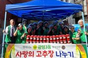 [광흥타임즈 = 조수제 기자] 광명시 광명7동 새마을부녀회는 16일 광명7동 행정복지센터 공유부엌에 모여 ‘사랑의 고추장 나눔 행사’를 열었다. 이번 행사는 지역사회 내 소외된 이웃들에게 따뜻한 마음을 전하기 위해 마련했으며, 새마을부녀회원들이 이른 아침부터 정성껏 담은 고추장을 독거 어르신, 저소득 가정 등 50여 가구에 전달했다. 이정숙동 회장은 “작은 정성이지만 이웃들에게 따뜻한 마음이 전달되기를 바라는 마음으로 고추장을 만들었다”며 “앞으로도 지속적으로 지역사회 나눔 활동을 이어가겠다”고 말했다. 한편, 광명7동 새마을부녀회는 매년 김장 나눔, 밑반찬 지원, 환경 정화 활동 등 다양한 봉사활동으로 이웃사랑을 실천하고 있다.