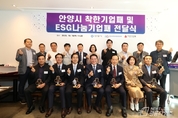 [광흥타임즈 = 조수제 기자] 안양시는 16일 오전 11시 30분 관내 음식점에서 지역사회와 이웃을 위해 나눔을 실천한 14개 기업을 대상으로 간담회와 함께 ‘착한기업’ 및 ‘이에스지(ESG)나눔기업’ 감사패 전달식을 가졌다. 나눔 실천에 감사의 마음을 전하고 나눔문화를 활성화하기 위한 이번 행사에는 최대호 안양시장과 14개 기업 대표 및 임원진, 구재관 지역사회보장협의체 민간위원장, 김효진 경기사회복지공동모금회 사무처장 등 20여명이 참석했다. 안양시 착한기업은 2년 이상 지속적으로 연평균 1천만원 이상을 기부한 기업으로, 이날 ▲(주)텔레트론 ▲이알케이솔루션(주) 등 2곳이 착한기업 감사패를 받았다. 이에스지(ESG)나눔기업은 지난해 1천만원 이상을 안양시에 기부한 기업으로, 착한기업으로 선정된 2개 기업과 ▲사회복지법인 백우현진복지재단 ▲(주)코스콤 ▲HL홀딩스 주식회사 ▲㈜쿠스코 ▲㈜대현환경 ▲㈜스크린에이치디코리아 ▲㈜벨루션네트웍스 ▲지에스파워(주) ▲디엔에프솔류션 ▲라온디앤씨(주) ▲평촌교통 ▲인창전자(주) 등 14개 기업이 이에스지(ESG)나눔기업 감사패를 받았다. 최대호 안양시장은 “기부는 단순한 나눔을 넘어 세상을 바꾸는 실천”이라며 “여러분