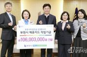 [광흥타임즈 = 조수제 기자] 부천시는 지난 11일 NH농협은행 부천시지부가 부천시 제휴카드 이용으로 적립된 1억 600만3천 원을 시에 전달했다고 12일 밝혔다. 이날 전달식에는 조용익 부천시장과 박금옥 NH농협은행 부천시지부장, 정명운 NH농협은행 부천시청출장소 지점장 등이 참석했다. 이번 적립금은 지난해 시 공무원과 사회복지법인 등 보조사업 기관이 부천사랑카드·부천통카드·보탬e카드 등 제휴카드를 사용한 실적에 따라 이용 금액의 0.1~1%를 적립해 조성됐다. 적립금은 노인복지기금을 비롯해 자활기금과 성평등 기금 등 시민 복지 향상을 위한 재원으로 활용한다. 특히 노인복지기금은 어르신 여가 활동 지원과 건강증진 등 노인복지 향상을 위한 다양한 사업에 활용할 계획이다. 부천시와 NH농협은행 부천시지부는 시민을 위한 발전 기금 조성을 위해 2003년 업무제휴 약정을 체결하고 법인 제휴카드를 발행해 이용 실적에 따른 적립금을 매년 기탁하고 있다. 또한 NH농협은행 부천시지부는 사회복지뿐 아니라 체육·문화예술 등 다양한 분야에서 사회공헌활동을 이어오며 지역사회 발전과 시민 삶의 질 향상에