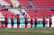 [광흥타임즈 = 조수제 기자] 김천상무프로축구단이 3월 8일 일요일, 김천종합운동장에서 열린 전북현대모터스와의 ‘하나은행 K리그1 2026’ 2R 홈경기에서 1대 1 무승부를 기록했다. 결과는 아쉬웠지만, 시종일관 전북과 대등한 경기를 펼치며 다음을 기대하게 했다. 김천상무는 지난 경기와 동일한 선발 라인업을 가동했다. 4-4-2 대형으로 시작한 경기의 골문은 백종범이 지켰다. 백포는 왼쪽부터 박철우, 이정택, 김민규, 김태환이 구축했다. 중원은 박태준과 이수빈이 맡았다. 이어 양쪽 날개에 왼쪽 김주찬, 오른쪽 고재현이 자리했다. 최전방에는 이건희와 박세진이 포진했다. 화제의 맞대결! 치열한 공방 속 전반은 0대 0 양 팀의 경기는 초반부터 치열했다. 김천상무 선수단 올 시즌 가장 꺾고 싶은 상대로 전북을 꼽았고, 승격팀 부천에 일격을 맞은 전북 역시 승리를 원했다. 전반 3분, 전북의 빠른 역습으로 위기를 맞았으나, 백종범의 안정적인 선방으로 실점을 면했다. 곧이어 김천상무도 반격에 나섰다. 전북