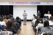 [광흥타임즈 = 조수제 기자] (재)광명문화재단은 3월 11일 수요일 광명시민회관 리허설룸에서‘2026년 광명문화재단 사업설명회’를 성황리에 개최했다고 밝혔다. 이번 설명회는 재단 사업에 관심있는 참여자들에게 재단의 2026년 비전과 중점 추진 방향을 공유하고, 지역문화, 공연·전시, 문화예술교육 및 지원 등 분야별 주요 사업을 소개하기 위해 마련됐다. 특히 재단에서 추진하는 공모사업은‘2026 광명문화재단 문화예술지원사업 통합공모’로 소개됐으며, 부서별 사업 설명을 통해 각 사업의 주요 내용과 운영 일정, 신청 방법 등을 상세히 안내했다. (재)광명문화재단 송은영 대표이사는 “이번 설명회는 재단이 준비한 다양한 사업을 시민 여러분께 직접 소개하고 의견을 나눌 수 있는 뜻깊은 자리였다”며 “앞으로도 더 많은 분들이 재단 사업에 관심을 갖고 편하게 참여할 수 있도록 노력하겠다”고 밝혔다. 지역 예술인과 문화예술 관계자, 시민 등 80여 명이 참석한 이번 설명회는 재단 사업에 대한 높은 관심을 확인 할 수 있는 자리였으며 촬영한 영상은 향후 광명문화재단 공식 유튜브 채널을 통해 확인할 수 있다.