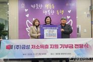 [광흥타임즈 = 조수제 기자] 안양시 동안구 평촌동 행정복지센터는 관내 건설자재 제조업체인 ㈜금성이 지난 27일 관내 어려운 이웃을 위해 사용해달라며 성금 1천만원을 센터에 기탁했다고 28일 밝혔다. 이번 기탁은 기업 이윤의 사회적 환원을 실천하고자 하는 송 대표와 임직원들의 뜻에 따라 이뤄졌다. 송 대표는“기탁한 성금이 한부모가정과 홀몸 어르신 등 취약계층이 따뜻한 연말을 보내는 데 보탬이 되길 바란다”며, “앞으로도 주변의 어려운 이웃들을 돌아보고, 지역사회에 꾸준히 공헌하는 기업이 되도록 노력하겠다”고 말했다. 강윤덕 평촌동장은“이웃돕기 성금을 기탁해주신 ㈜금성에 감사드리며, 기탁된 성금은 ㈜금성 모든 임직원들의 소중한 마음을 담아 관내 어려운 이웃들이 따뜻하고 행복한 연말연시를 지내실 수 있도록 잘 전달하겠다”고 말했다. 한편, ㈜금성은 임직원 수 40여 명의 평촌동 관내 중소기업으로 금속구조물, 창호공사 등의 사업을 영위하며, 기본에 충실함을 바탕으로 성실과 책임시공을 통해 고객만족을 추구한다는 경영방침 아래 활발한 기업활동을 하고 있다.