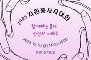 [광흥타임즈 = 조수제 기자] 안양시자원봉사센터는 12월 5일 오후 2시, 시청 강당에서 ‘2025 안양시 자원봉사자대회’를 연다고 28일 밝혔다. 이번 대회는 ‘함께하는 봉사, 안양의 미래로’를 슬로건으로 내걸었다. 12월 5일 ‘자원봉사자의 날’을 기념하고, 지역사회 곳곳에서 나눔을 실천해 온 자원봉사자들에게 감사의 마음을 전하기 위해 마련됐다. 자원봉사자, 축하객 등 1,000여 명이 참석할 예정인 가운데, 유공자에 대한 표창과 함께 축하공연과 기념식 등 다양한 행사가 진행된다. 이날 축하공연으로는 줄넘기와 오카리나 공연 그리고 어그먼트 미니콘서트로 꾸며져, 세대와 재능이 어우러지는 무대를 통해 ‘함께하는 봉사’의 의미를 따뜻하게 담아낼 예정이다. 이어 기념식에서는 지역 발전에 공로가 있는 우수한 자원봉사자를 선정해 ▲안양시장표창 ▲안양시의회의장표창 ▲안양시국회의원표창과 함께, 누적 봉사시간 기준으로 ▲자원봉사왕(10,000시간 이상) ▲자원봉사 금장(5,000시간 이상) ▲자원봉사 은장(3,000시간 이상)이 총 115명에게 수여된다. 더불어 슬로건 포토존을 활용한 SNS 인증 이벤트도 함께 진행된다.