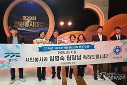 [광흥타임즈 = 조수제 기자] 안양시는 임명숙 시민봉사과 차량등록팀장이 27일 오전 11시부터 SBS프리즘타워에서 열린 ‘2025년 제29회 민원봉사대상’에서 본상을 받았다고 28일 밝혔다. 민원봉사대상은 행정안전부와 SBS가 공동 주최하고 농협이 후원하는 상으로, 민원 시책 개발과 헌신적인 봉사로 국민 편익 증진을 위해 노력하는 공무원에게 수여하는 영예로운 상이다. 임명숙 차량등록팀장은 그동안 ▲경로당 어르신들을 위한 찾아가는 스마트폰 교육 및 키오스크 교육 추진 ▲노후 경로당 그린리모델링 사업 컨설팅 신청 등 어르신들의 생활 불편을 줄이기 위한 다양한 행정 서비스를 펼쳐왔다. 또한 ▲무인민원발급기 확대 설치 및 종합병원 무인발급기 365 운영 ▲무인민원발급기 가족관계등록부 확대 발급 등 민원 접근성과 편의성을 높이는 데에도 큰 역할을 했다. 임명숙 팀장은 “이 상은 제 개인의 영예가 아니라 시민중심 행정을 위해 함께 노력한 안양시 전체 직원의 성과라고 생각한다”며 “앞으로도 시민들을 위해 더 봉사하고 공직자로서 직분을 성실하게 수행하여 시민 서비스 개선을 위해 최선을 다하겠다”고 소감을 밝혔다