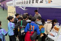 [광흥타임즈 = 조수제 기자] 경기도안양과천교육지원청는 2026년 3월 30일, 안양종합운동장에서 개최된 ‘안양과천 교육장배 육상경기대회’와 연계하여 '안양과천미리내공유학교' 홍보 행사를 운영했다. 이번 행사는 육상경기대회에 참가한 학생과 학부모를 대상으로 진행했으며, 현장에서 자연스럽게 안양과천미리내공유학교 봄시즌 운영 프로그램과 지역교육협력 교육을 안내하는 찾아가는 홍보 방식으로 운영하었다. 행사장 내 홍보 부스에서는 ▲ 안양과천미리내공유학교 지역맞춤형 봄시즌 2기 36개 프로그램 안내 ▲ 학교 맞춤형 교육과정 연계 사업 소개 ▲안양시·과천시 교육협력 사업 홍보 등 다양한 교육 정보를 제공했다. 특히 참여한 학생과 학부모를 대상으로 안양과천미리내공유학교 개설 프로그램 신청 상담 및 학부모 대상 진로·교육 방향 안내를 함께 진행하여 큰 호응을 얻었다. 이번 행사는 학교체육 행사와 교육정책 홍보를 결합한 사례로, 대규모 학생 참여가 이루어지는 육상경기대회를 활용하여 보다 효과적인 홍보를 실현했다는 점에서 의미가 있다. 현장에 참여한 한 학부모는“아이의 진로와 연계된 다양한 프로그램을 한 자리에서