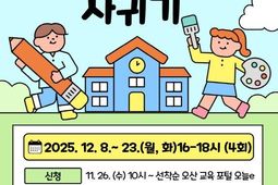 [광흥타임즈 = 조수제 기자] 오산시 초평도서관은 오는 12월 8일부터 23일까지 7세 어린이를 대상으로 예비초등스쿨 '두근두근 새 친구 사귀기' 프로그램을 총 4회 운영한다고 밝혔다. 프로그램은 초평도서관 지하 1층 강좌실과 체험형 동화구연실에서 진행된다. ‘예비초등스쿨’은 2026년도 초등학교 입학 예정인 미취학 어린이 10명을 대상으로 하며, 교과 연계 도서를 활용한 창의적 독후 활동과 체험형 동화구연을 제공한다. 체험형 동화구연은 어린이가 텔레비전 화면 속 주인공으로 등장해 이야기를 이끌어가는 참여형 방식으로 구성되어 몰입감을 높인 것이 특징이다. 회차별 선정 도서는 '나쁜 말 먹는 괴물', '두근두근 1학년 새 친구 사귀기', '난 할 수 있어', '다다다 다른 별 학교'이며, 이에 따른 활동은 ▲고운 말 먹는 괴물 활동지 ▲두근두근 에코백/용기의 팔찌 만들기 ▲콜라주로 내 이름 만들어 꾸미기 ▲나만의 다른 별 만들기 등으로 진행될 예정이다. 강래출 오산시 중앙도서관장은 “초등 입학을 앞둔 어린이들이 학교생활에 긍정적으로 적응하고, 그림책을 통해 자기 표현력과 사회성을 기를 수 있는 의미 있는 시간이