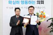 [광흥타임즈 = 조수제 기자] 이상복 오산시의회 의장이 12일 2025년 우수 의정·행정 대상 ‘협치·책임 의정 리더십 명예 대상(Honorary Award for Leadership in Cooperative and Accountable Legislative Governance)’을 수상했다. 이번 상은 경기도 일간기자단이 주관하는 시상으로, 지방의회 운영 과정에서 갈등을 조정하고 책임 있는 리더십을 발휘하여 협력 중심의 의정 문화를 구축한 의회 지도자에게 수여된다. 이 의장은 제8·9대 오산시의회 의원과 제9대 후반기 의장으로 활동하며 의회의 안정적 운영 기반을 마련하고, 정치적 대립을 넘어 실질적인 책임 의정을 구현한 공로를 인정받았다. 특히 이 의장은 오산시의 지속적인 인구 증가에도 불구하고 수십 년간 유지돼 온 기초의원 정수 동결 문제를 개선하기 위해 제도 논의를 주도하는 등 27만 오산시민의 대표성과 참여 기회를 확대하기 위해 노력해 온 점이 높은 평가를 받았다. 이는 지방의회의 대표성과 책임성을 강화하려는 의미 있는 시도로 평가되고 있다. 또한 의장 취임 이후 본회의장 단상을 낮추는 상징적 변화로 권위적인 의회 문화를 개선하고, 의원 간 수평적