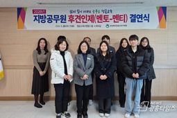 [광흥타임즈 = 조수제 기자] 경상북도청송교육지원청은 28일 청송교육지원청 2층 소회의실에서 관내 2026년 1월 1일 자 신규 임용 지방공무원 5명과 선배 공무원들이 참석한 가운데 '지방공무원 후견인제(멘토링) 멘토-멘티 결연식'을 개최했다. 이번 결연식은 신규 공무원들의 공직사회 적응을 돕고, 행정업무 전반에 대한 이해와 실무 역량을 높이기 위해 마련됐다. 결연식에서는 멘토와 멘티 간의 상호 소개와 함께 후견인제 운영 취지 및 활동 방향을 공유하는 시간을 가졌다. 후견인제는 업무 경험이 풍부한 선배 공무원이 멘토가 되어 신규 공무원의 업무 지도는 물론 조직문화 적응, 공직자로서의 기본 소양 함양을 지원하는 제도로, 신규 공무원들의 안정적인 공직 정착에 큰 도움이 될 것으로 기대된다. 남정일 교육장은 “멘토와 멘티 간의 소통과 협력을 통해 신규 공무원들이 공직 생활에 자신감을 가지고 성장해 나가길 바란다”며 “앞으로도 체계적인 인재 양성과 따뜻한 조직문화 조성을 위해 지속적으로 노력하겠다”고 했다.