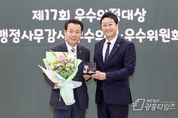 [광흥타임즈 = 조수제 기자] 경기도의회 건설교통위원회 김성수 의원(더불어민주당, 안양1)이 ‘2025년 행정사무감사 우수 의원’으로 선정됐다. 이로써 김 의원은 2024년에 이어 2년 연속 우수 의원 선정이라는 값진 성과를 거두었다. 경기도의회는 매년 행정사무감사 결과를 종합 평가하여 우수 의원을 선정하고 있다. 김 의원은 도민의 일상생활 속 어려움과 행정의 문제점을 발굴하고, 건설·교통 분야의 구체적인 미비점을 지적하고 적극적으로 대안을 제시한 점에서 높은 평가를 받았다. 특히 ▲시내버스 서비스품질을 저하시키는 무단 결행 문제 해결 방안 ▲차고지와 기·종점의 거리가 먼 시내버스에 대한 운행여건 개선 ▲개인택시와 마을버스 업계가 겪고 있는 어려움과 해소방안 ▲위례과천선 및 서울서부선의 안양 연장방안 ▲민자고속화도로에 졸음쉼터 등 휴게공간 설치 필요성 등을 집중적으로 지적하며, 도민의 삶의 질과 직결된 교통 복지 향상을 위해 전방위적인 의정 활동을 펼쳤다. 김성수 의원은 “의정활동의 꽃이라 불리는 행정사무감사에서 2년 연속 우수 의원으로 선정되어 큰 자부심과 함께 무거운 책임감을 느낀다”는 수상 소감을 밝혔다