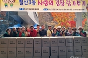 [광흥타임즈 = 조수제 기자] 광명시 철산3동 새마을부녀회는 지난 19일부터 20일까지 이틀간 철산3동 행정복지센터 앞마당에서 ‘사랑의 김장 나누기’ 행사를 열었다. 이번 행사에는 철산3동 새마을부녀회와 유관 단체 회원 50여 명이 참여해 정성껏 담근 김장김치를 취약계층 62가구에 10kg씩, 관내 경로당 9곳에는 20kg씩 전달했다. 또한 한국마사회 광명지사와 광명동부 새마을금고 등 지역의 여러 기관·단체가 따뜻한 나눔에 함께했다. 임순자 회장은 “물가 상승으로 김장 준비가 어려운 이웃들에게 정성껏 담근 김치가 따뜻한 마음으로 전해지길 바란다”며 “앞으로도 회원들과 함께 나눔과 봉사를 꾸준히 이어가겠다”고 전했다. 손영만 동장은 “쌀쌀한 날씨에도 이웃 사랑을 실천한 새마을회원들과 유관 단체원들에게 감사하다”며 “이번 김장 나눔으로 어려운 이웃들이 따뜻한 겨울을 보내길 바란다”고 말했다. 한편, 철산3동 새마을부녀회는 이웃돕기 바자회, 불고기·반찬 나눔, 거리 청소 등 다양한 봉사활동으로 따뜻하고 살기 좋은 지역사회 조성에 힘쓰고 있다.