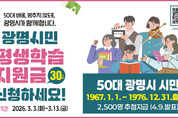 [광흥타임즈 = 조수제 기자] 광명시가 50대 중장년 시민의 배움 기본권 보장을 위해 올해도 평생학습지원금 지원을 이어간다. 시는 오는 3월 3일부터 13일까지 11일간 ‘2026년 광명시민 평생학습지원금’ 신청을 받는다고 26일 밝혔다. 광명시민 평생학습지원금은 생애 전환기를 맞은 50대 시민이 나이·소득·배경과 관계없이 배움을 지속할 수 있도록 생애 1회 1인당 30만 원의 평생학습이용포인트를 지원하는 사업이다. 시민 스스로 자신의 삶과 필요에 맞는 학습을 선택하도록 돕는 것이 핵심 목적이다. 박승원 광명시장은 “배움은 선택이 아닌 누구에게나 보장돼야 할 기본권”이라며 “시민이 나이나 환경의 제약 없이 언제든지 배움을 이어갈 수 있도록 평생학습 기반을 더욱 탄탄히 만들어가겠다”고 밝혔다. 신청 대상은 1967년 1월 1일부터 1976년 12월 31일 사이에 출생한 50대 광명시민이다. 광명시에 1년 이상 계속 거주했거나, 거주기간을 합산해 5년 이상 거주하고 있어야 한다. 시는 총 2천500명을 선정해 지원한다. 59세(1967년생)는 올해가 마지막 지원 대상임을 고려해 우선 선정하고, 1968~1976년생은 무작위 추첨해 대상자를 결정한다. 광명시민 평