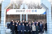[광흥타임즈 = 조수제 기자] 김진경 경기도의회 의장(더민주, 시흥3)이 2일 ‘2026년 병오년(丙午年)’ 새해를 맞아 현충탑을 참배했다. 김 의장은 이날 오전 10시 시흥시 논곡동에 위치한 현충탑에서 묵념과 헌화·분향을 하며 순국선열 및 호국영령을 기렸다. 방명록에는 ‘거룩한 헌신을 받들어 경기도와 시흥의 눈부신 발전으로 보답하겠습니다’라는 메시지를 남겼다. 이날 참배에는 안광률 교육기획위원장, 장대석 의원, 이동현 의원, 김종배 의원 등 도의원과 함께 광복회, 대한상이군경회, 재향군인회 등 60여명이 함께 했다. 김 의장은 “새해를 맞아 순국선열들의 숭고한 희생을 다시 한번 기리며 경기도민의 더나은 삶을 위해 더욱 열심히 노력하겠다는 각오를 다졌다”라며 “오로지 도민만 바라보며 더 큰 책임과 각오로 나아가겠다”고 밝혔다.